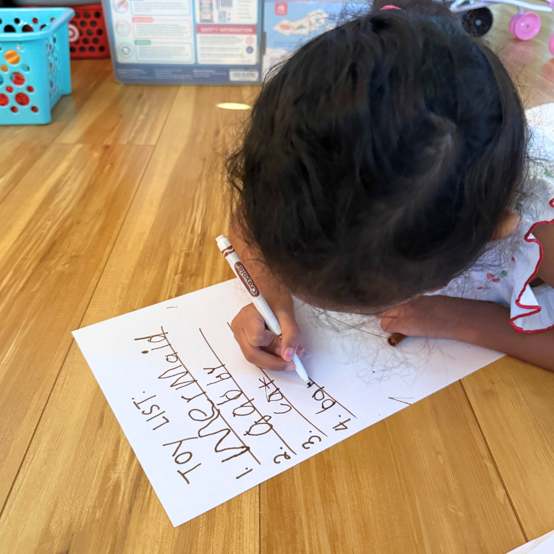 Writing down her wish list is a fun way for her to practice both writing and spelling skills. It’s a simple activity that doubles as a festive craft!